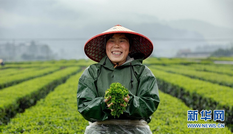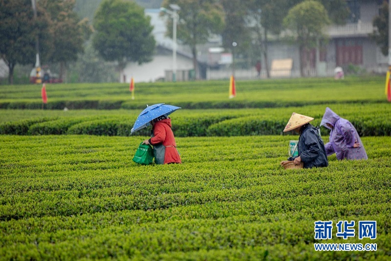 圖為湖北來(lái)鳳縣大河鎮(zhèn)桐子園村村民在采摘春茶。桐子園村村集體與茶葉公司簽訂茶葉鮮葉收購(gòu)協(xié)議,采茶工資當(dāng)場(chǎng)發(fā)放,保證茶農(nóng)每天至少增收百余元。