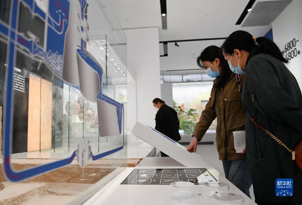 4月28日,游客在陜西考古博物館內(nèi)了解植物考古知識(shí)。新華社記者 李一博 攝