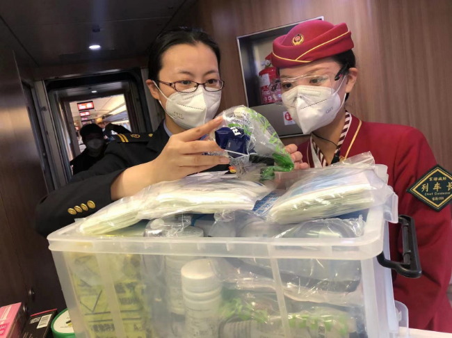 楊珺通常是早上5點(diǎn)剛過,就早早來到天津站站臺,等候登上早上6點(diǎn)半左右的第一班列車檢查乘務(wù)工作。疫情以來,楊珺總是習(xí)慣“早到一點(diǎn)”,充分利用這段“慢節(jié)奏”時(shí)間,靜下心來把近期的重點(diǎn)工作梳理清楚,編輯成微信溫馨提示發(fā)送給即將出乘的班組,方便大家閱讀學(xué)習(xí)。列車一到站臺,楊珺就和出乘的班組一同登上列車,開始了細(xì)致的檢查,車廂衛(wèi)生,備品擺放,物品定型,設(shè)備設(shè)施的狀況,防疫用品的配備,“勞動節(jié)假期快要到了,客流量會比往日增加,這期間我們一定要比平時(shí)更加細(xì)致,像座位扶手、垃圾箱、門把手,只要是旅客頻繁接觸的位置,都必須逐一落實(shí)消毒要求……”每走到一個(gè)車廂,楊珺都會一遍又一遍地叮囑,并且和乘務(wù)員一起落實(shí)所在區(qū)域的重點(diǎn)安全工作。