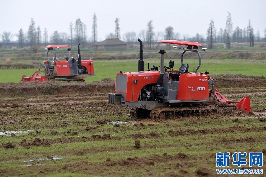 在江西省南昌縣蔣巷鎮(zhèn)大田農(nóng)社,兩臺無人旋耕機正在翻地作業(yè)。新華社記者 彭昭之?dāng)z