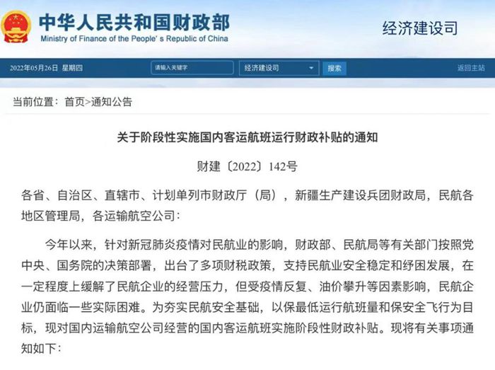 記者26日了解到,財政部、民航局日前發(fā)布通知,自2022年5月21日至2022年7月20日,對國內(nèi)運輸航空公司經(jīng)營的國內(nèi)客運航班實施階段性財政補貼。原則上當(dāng)每周內(nèi)日均國內(nèi)客運航班量低于或等于4500班(保持安全運行最低飛行航班數(shù))時,啟動財政補貼。對國內(nèi)客運航班實際收入扣減變動成本后的虧損額給予補貼。設(shè)定最高虧損額補貼標(biāo)準(zhǔn)上限為每小時2.4萬元。(記者申鋮、周圓)