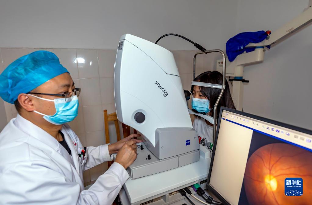 6月5日,學生在貴州省黔西市人民醫(yī)院眼科檢查視力。新華社發(fā)(范暉 攝)
