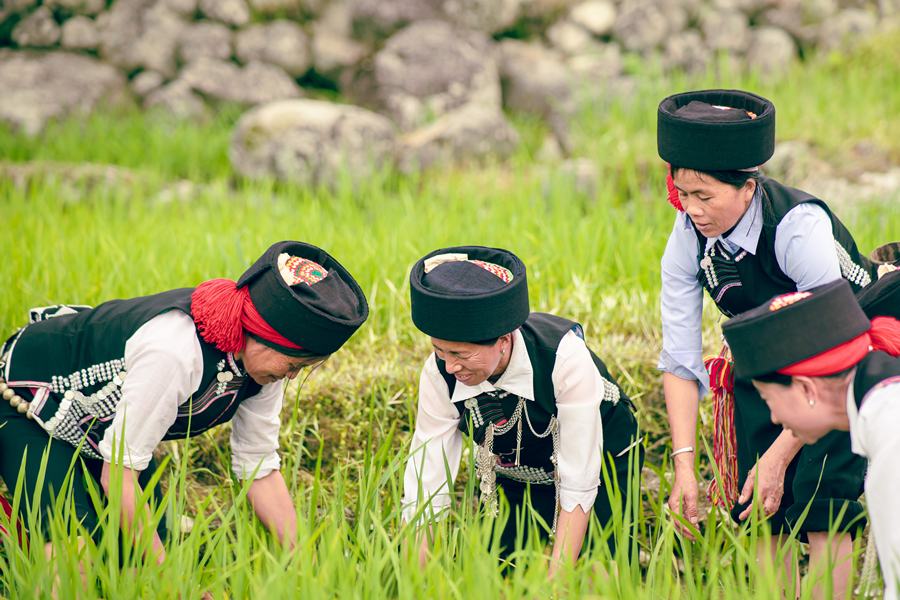 哈尼同胞梯田拿魚(5月28日攝 ) 。綠春縣文化和旅游局 供圖