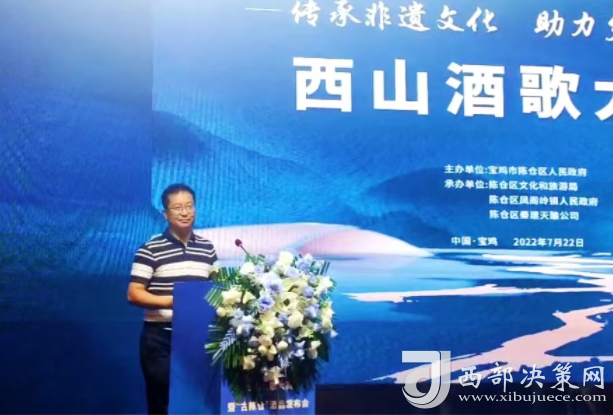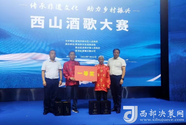 西部決策網(wǎng)訊(劉恒 通訊員 王榮)為傳承陜西省非物質(zhì)文化遺產(chǎn)“西山酒歌”文化,積極探索鄉(xiāng)村特色文化產(chǎn)業(yè)助推鄉(xiāng)村振興,進(jìn)一步豐富人民群眾文化生活,展示廣大人民群眾的良好精神風(fēng)貌。7月22日由寶雞市陳倉區(qū)人民政府主辦,區(qū)文旅局、鳳閣嶺鎮(zhèn)人民政府承辦的“西山酒歌”大賽在寶雞奧斯頓酒店圓滿落下帷幕。鳳閣嶺鎮(zhèn)6個參賽隊40余名選手參加了此次比賽。區(qū)政協(xié)主席茍曉明,區(qū)委常委、常務(wù)副區(qū)長屈亞奇,區(qū)委常委、人武部政委王斌,區(qū)委常委、宣傳部長徐宏剛,區(qū)人大常委會副主任尉曉平,寶雞市西山建委副主任齊文強(qiáng),市陸港新城紀(jì)工委書記李巖,區(qū)法院黨組書記、院長田廣玉,區(qū)文化和旅游局局長齊智雄,鳳閣嶺鎮(zhèn)黨委書記張小衛(wèi),鎮(zhèn)長牟峰濤,區(qū)級各部門、各鎮(zhèn)街有關(guān)領(lǐng)導(dǎo)參加活動。