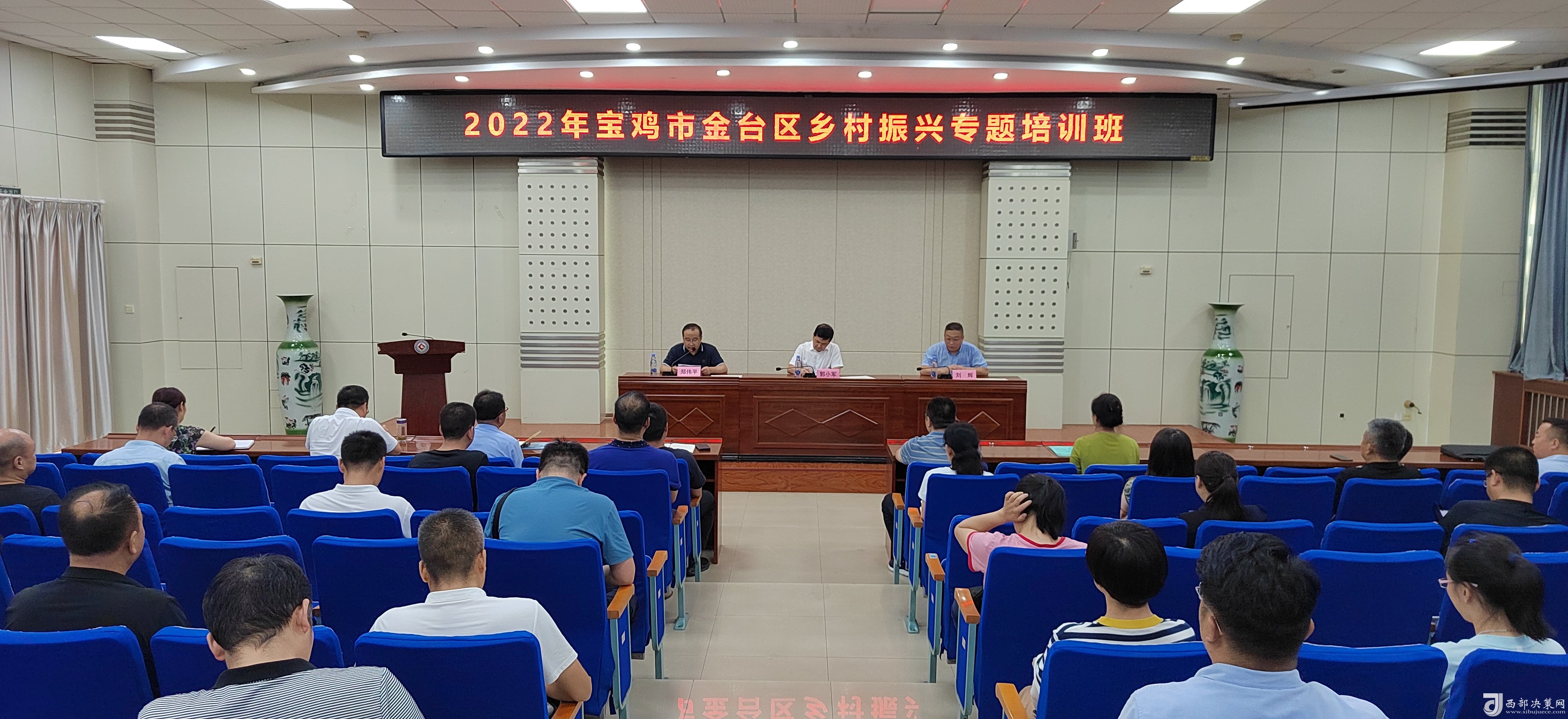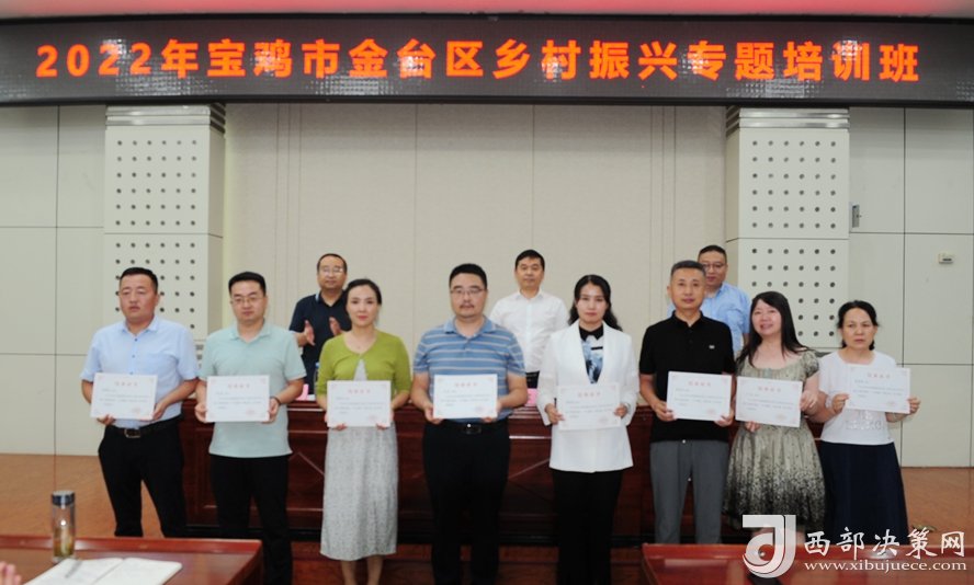 西部決策網(wǎng)訊 8月6日下午,為期三天的“2022年寶雞市金臺區(qū)鄉(xiāng)村振興專題培訓(xùn)班”結(jié)束了!60余學(xué)員順利的拿到了結(jié)業(yè)證。寶雞文理學(xué)院經(jīng)濟管理學(xué)院院長、陜西鄉(xiāng)村振興研究中心主任劉輝;金臺區(qū)政府副區(qū)長郭小軍出席了結(jié)業(yè)儀式。參加結(jié)業(yè)儀式的還有金臺區(qū)鄉(xiāng)村振興局主要負責(zé)人、分管領(lǐng)導(dǎo),各鎮(zhèn)涉農(nóng)街道黨(工)委書記和鄉(xiāng)村振興工作分管領(lǐng)導(dǎo),區(qū)委實施鄉(xiāng)村振興戰(zhàn)略領(lǐng)導(dǎo)小組和區(qū)委抓黨建促鄉(xiāng)村振興領(lǐng)導(dǎo)小組各成員單位分管領(lǐng)導(dǎo)。結(jié)業(yè)儀式由金臺區(qū)鄉(xiāng)村振興局局長鄭偉平主持。