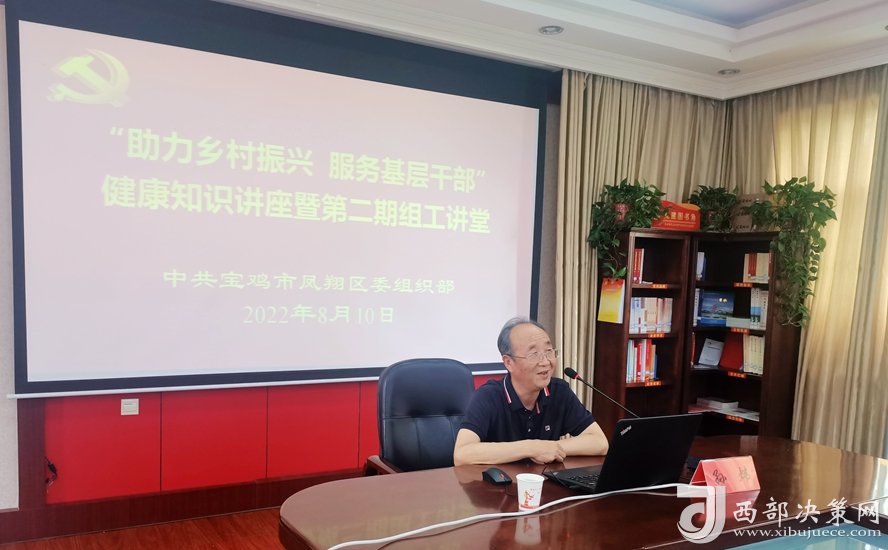 西部決策網(wǎng)訊 近日,九三學(xué)社寶雞市鳳翔區(qū)綜合支社醫(yī)學(xué)研究室,在鳳翔區(qū)委組織部開(kāi)展“助力鄉(xiāng)村振興 服務(wù)基層干部”健康知識(shí)講座活動(dòng)。本次活動(dòng)以智慧黨建平臺(tái)視頻系統(tǒng)召開(kāi),鳳翔區(qū)委組織部為主會(huì)場(chǎng),各鎮(zhèn)、村設(shè)分會(huì)場(chǎng),各鎮(zhèn)機(jī)關(guān)干部、村干部,駐村工作隊(duì)第一書(shū)記、隊(duì)員,鳳翔區(qū)委組織部機(jī)關(guān)全體干部,共計(jì)600余人參加會(huì)議。