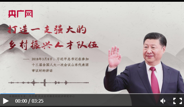 習(xí)近平:讓愿意留在鄉(xiāng)村、建設(shè)家鄉(xiāng)的人留得安心,讓愿意上山下鄉(xiāng)、回報(bào)鄉(xiāng)村的人更有信心,激勵(lì)各類人才在農(nóng)村廣闊天地大施所能、大展才華、大顯身手,打造一支強(qiáng)大的鄉(xiāng)村振興人才隊(duì)伍。