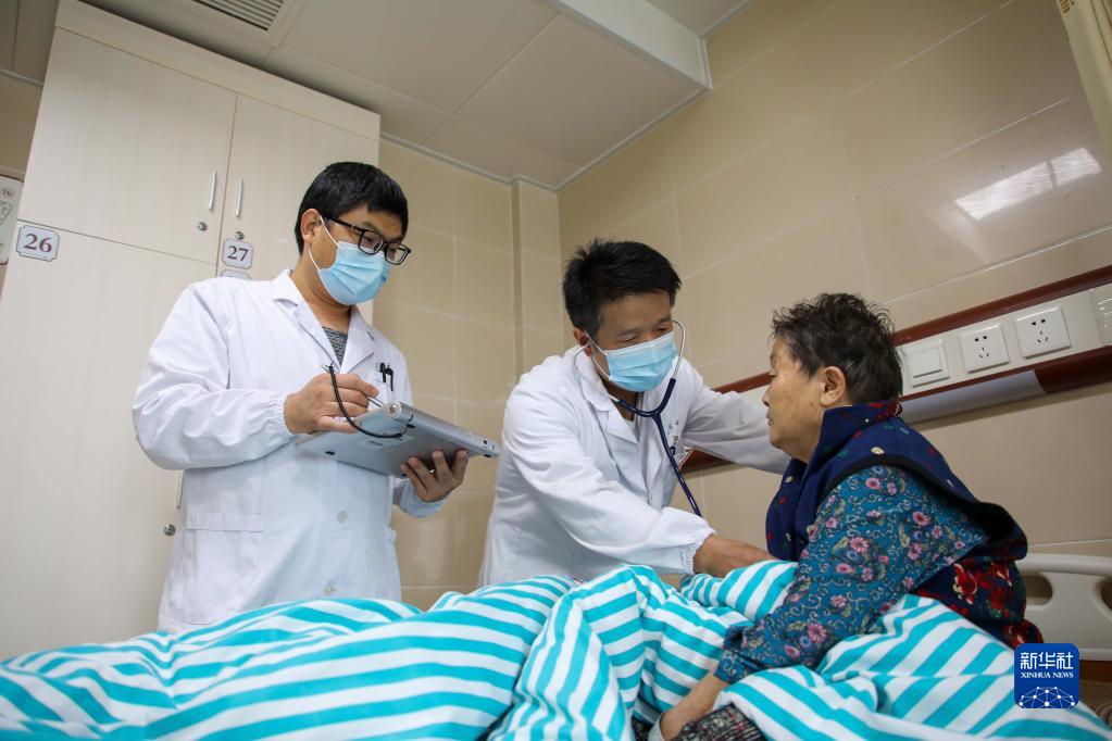 安徽省明光市中醫(yī)院醫(yī)生在病房查房(2022年10月2日攝)。新華社記者 曹力 攝