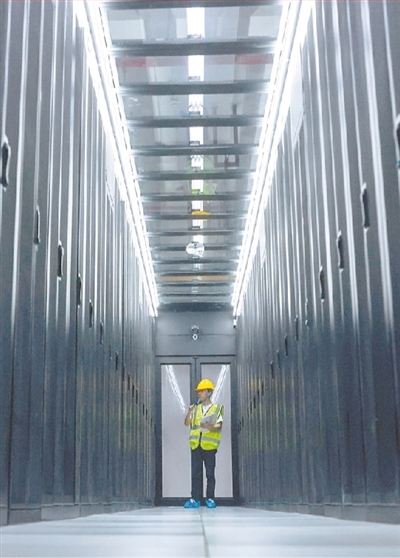 近年來,貴州省全力實(shí)施大數(shù)據(jù)戰(zhàn)略行動,數(shù)字經(jīng)濟(jì)增速全國領(lǐng)先,給當(dāng)?shù)厝罕娚a(chǎn)生活方式帶來顯著改變。圖為工作人員在中國移動貴陽數(shù)據(jù)中心機(jī)房內(nèi)巡檢。 |