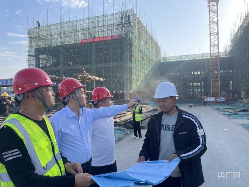 張留民(左二)在電源器件生產(chǎn)項目建設現(xiàn)場(央廣網(wǎng)發(fā) 殷吉星 攝)