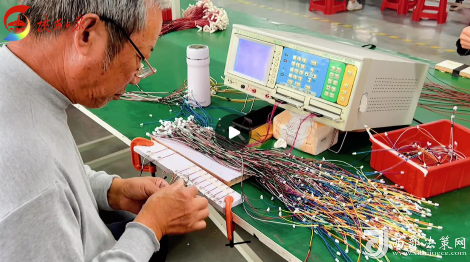 9月27日,譚壩鎮(zhèn)松壩社區(qū)。在安康歐利科精密電子科技有限公司新社區(qū)工廠寬敞明亮的車間里,工人們正熟練地進(jìn)行著電子線束生產(chǎn)流程的各項工作,隨處可見紅綠黃黑各種顏色的電子線束。隨著檢測設(shè)備顯示“良品”,一根根連接合格的電子線束“奔”向下一道工序。