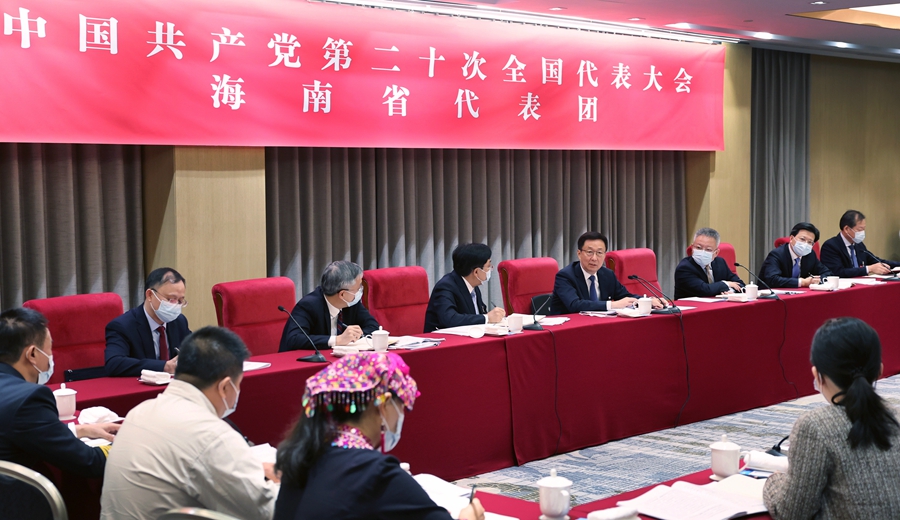 (二十大受權(quán)發(fā)布)韓正在參加黨的二十大海南省代表團(tuán)討論時(shí)強(qiáng)調(diào) 深刻領(lǐng)悟“兩個(gè)確立”的決定性意義 堅(jiān)定不移推進(jìn)中華民族偉大復(fù)興歷史進(jìn)程
