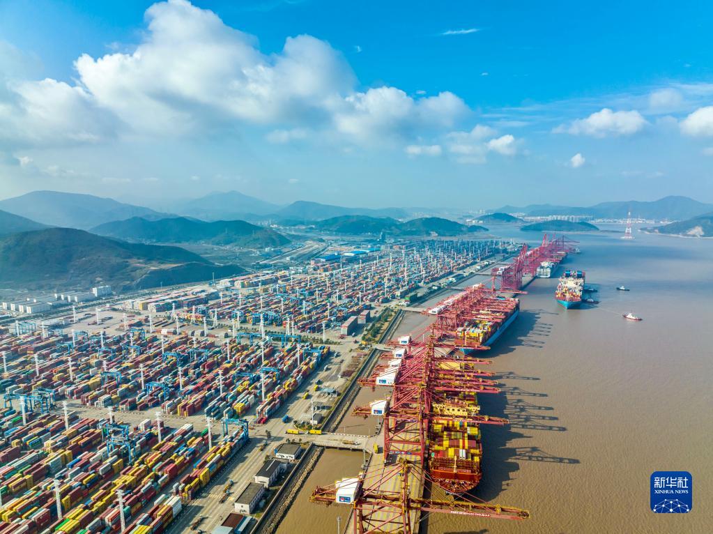 這是浙江寧波舟山港穿山港區(qū)(2021年12月24日攝,無(wú)人機(jī)照片)。新華社發(fā)(湯健凱 攝)