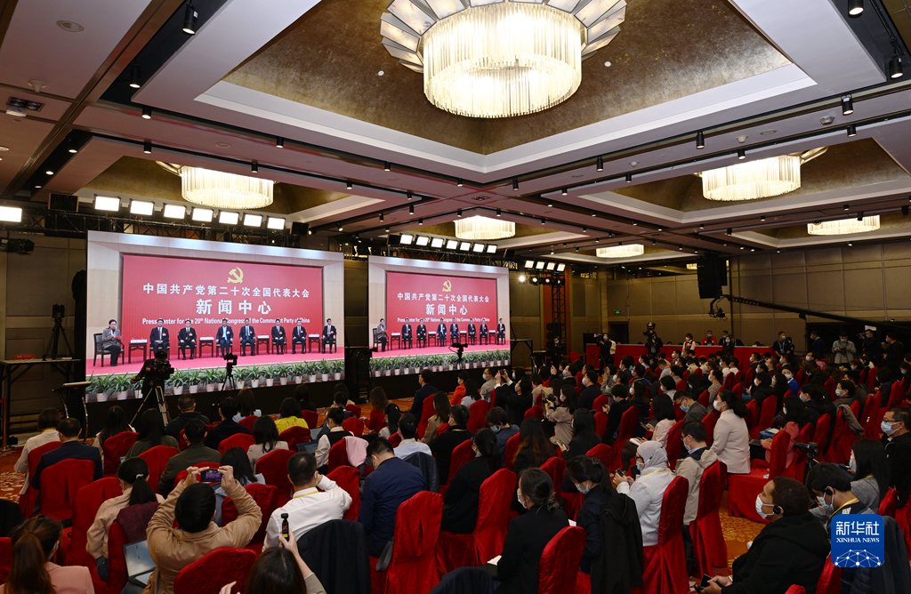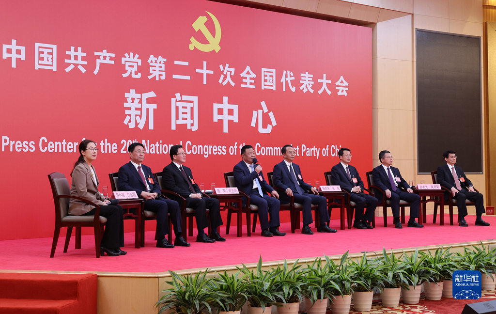 10月19日,中國(guó)共產(chǎn)黨第二十次全國(guó)代表大會(huì)新聞中心舉行集體采訪。山東、河南、湖北、湖南、廣東、廣西、海南代表團(tuán)新聞發(fā)言人出席,介紹代表團(tuán)學(xué)習(xí)討論二十大報(bào)告情況,并回答記者提問。新華社記者 張玉薇 攝