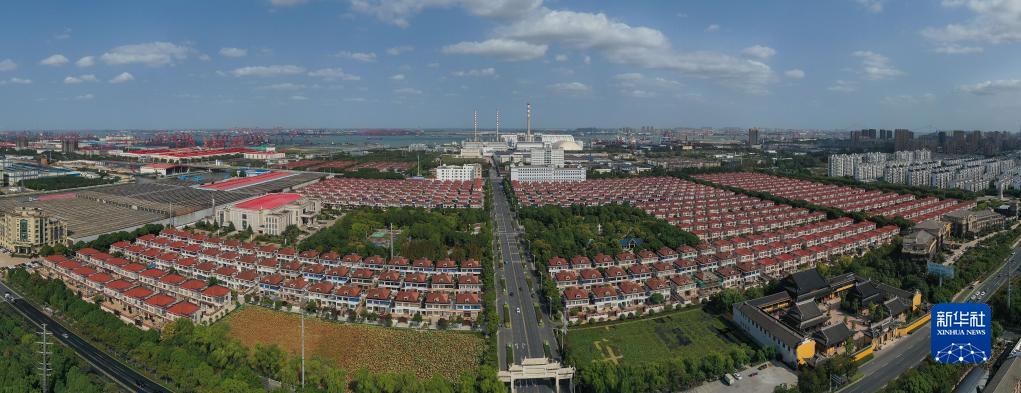 這是10月17日拍攝的江蘇江陰長江村村貌(無人機(jī)照片)。新華社記者 季春鵬 攝