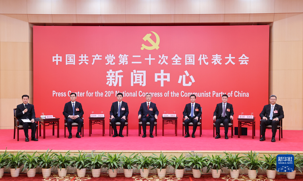 10月20日,中國共產(chǎn)黨第二十次全國代表大會新聞中心舉行集體采訪。青海、寧夏、新疆、中央和國家機關、中央金融系統(tǒng)、中央企業(yè)系統(tǒng)(在京)代表團新聞發(fā)言人出席,介紹代表團學習討論二十大報告情況,并回答記者提問。新華社記者 陳建力 攝