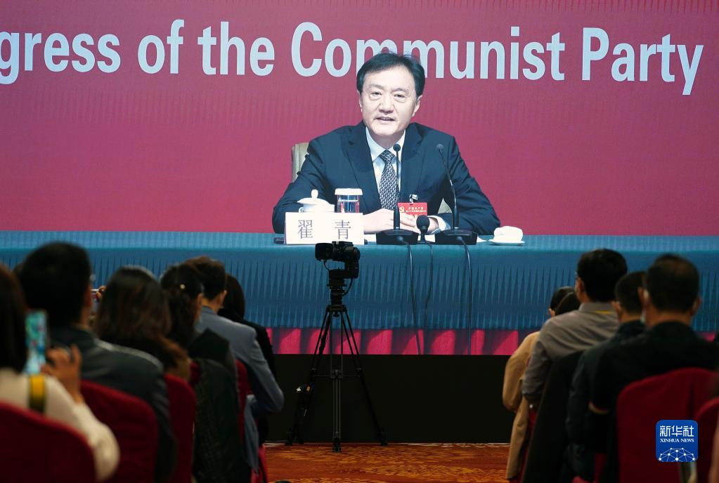 10月21日,中國共產(chǎn)黨第二十次全國代表大會(huì)新聞中心舉行記者招待會(huì)。生態(tài)環(huán)境部黨組成員、副部長翟青圍繞“建設(shè)人與自然和諧共生的美麗中國”主題與記者交流。新華社記者 宋彥樺 攝