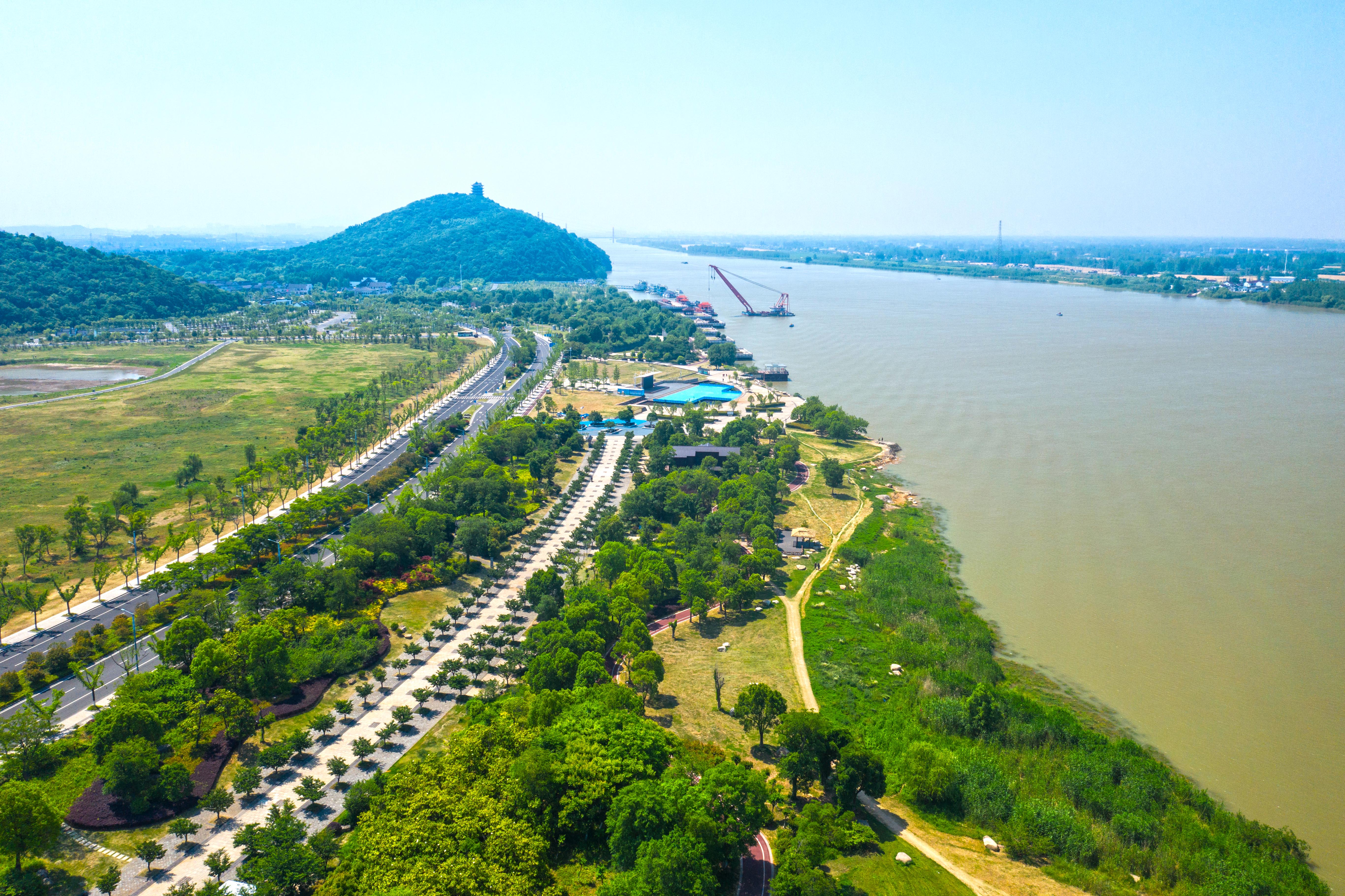 安徽省馬鞍山市長江岸線景觀帶(2022年5月17日攝,無人機(jī)照片)。新華社發(fā)