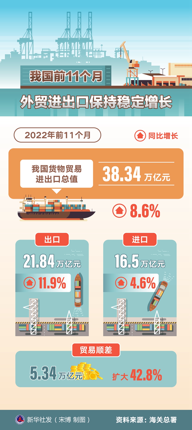 我國(guó)前11個(gè)月外貿(mào)進(jìn)出口保持穩(wěn)定增長(zhǎng)