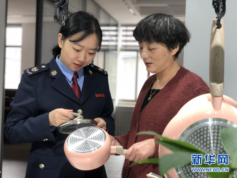 稅務人員與寧波喜爾美廚房用品有限公司工作人員交流。新華網(wǎng)發(fā)
