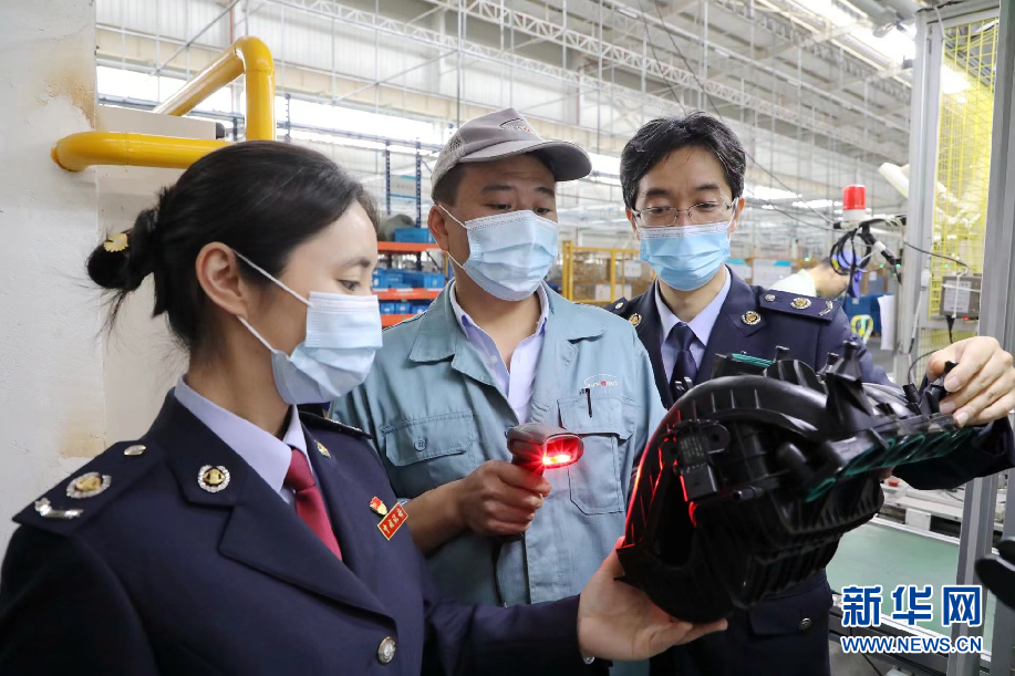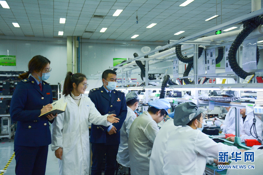 稅務人員在神通科技集團股份有限公司廠區(qū)了解產(chǎn)品情況。新華網(wǎng)發(fā)