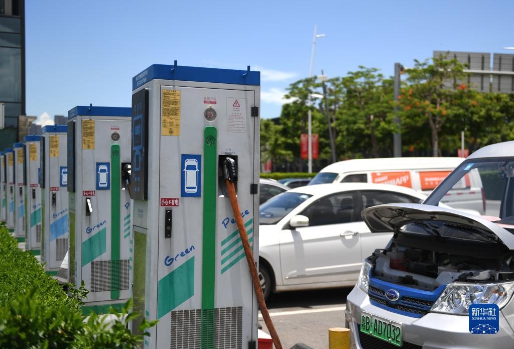 新能源汽車在深圳前海一處停車場充電(2021年7月15日攝)。新華社記者 毛思倩 攝