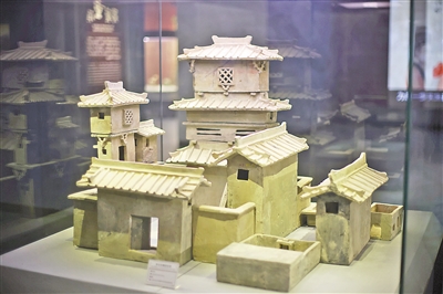 “有一件文物特別珍貴,我們很少外借展出。”秦佳穎神秘地說。這件文物就是位于基本陳列展第二單元“兩漢豐韻”的東漢灰陶四合院建筑模型。
