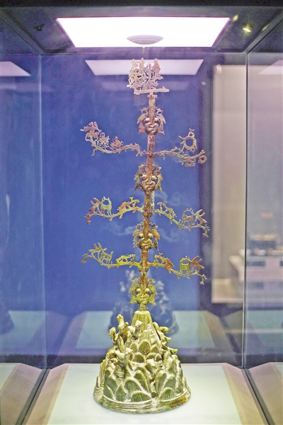 其中出土的東漢綠釉紅陶扶桑,俗稱“搖錢樹”。“搖錢樹”是我國西南地區(qū)的一種特殊陪葬品。“傳說搖動樹干,就會源源不斷地掉下錢幣,在老百姓心中,它就是財富的象征。”秦佳穎說。