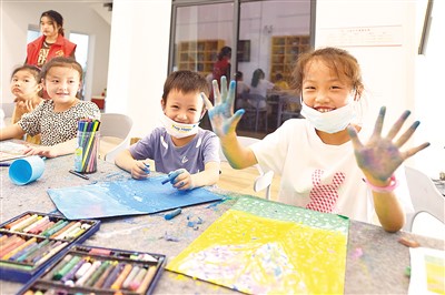 江口村的孩子在藝術區(qū)工藝美術培訓班上畫畫。鐘 磊攝