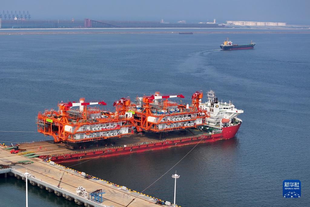 這是8月9日在天津?yàn)I海新區(qū)拍攝的渤中19-6凝析氣田I期開(kāi)發(fā)項(xiàng)目組塊裝船作業(yè)現(xiàn)場(chǎng)。組塊裝船后將赴渤海西部海域,進(jìn)入海上安裝和聯(lián)調(diào)階段。新華社發(fā)(杜鵬輝攝)