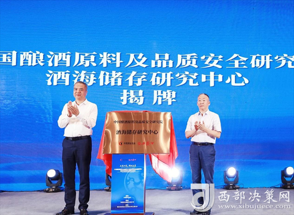 寶雞市委書記楊廣亭、中國(guó)酒業(yè)協(xié)會(huì)理事長(zhǎng)宋書玉共同為酒海儲(chǔ)存研究中心揭牌