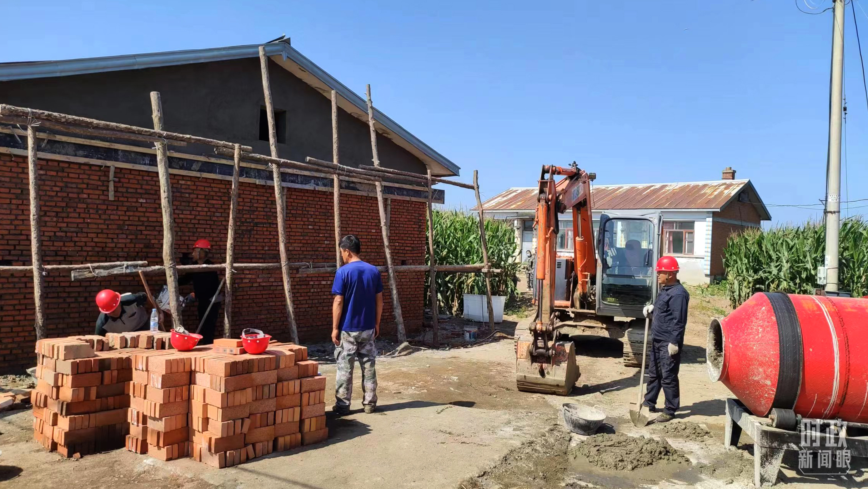 △村民正在修繕被損的房屋。(總臺(tái)央視記者薛冠南拍攝)