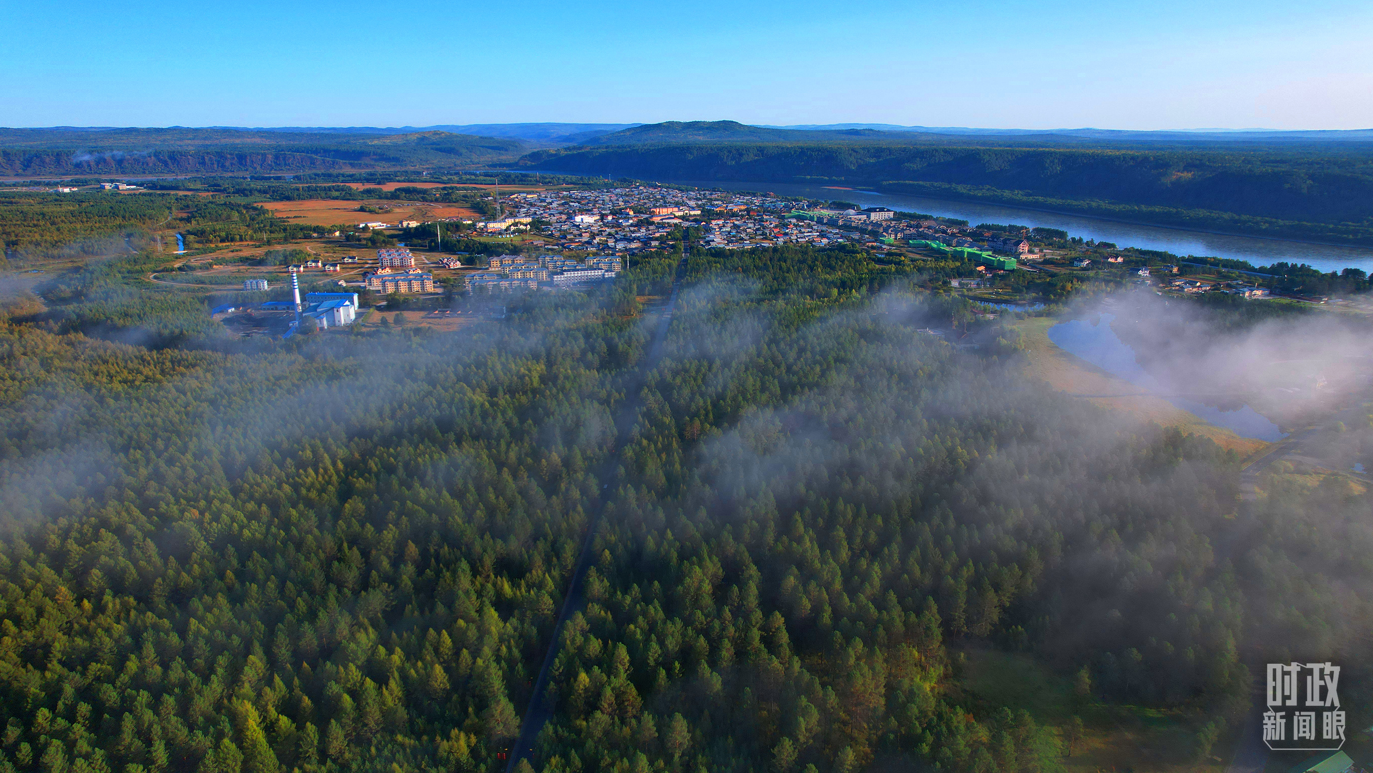 △薄霧籠罩的漠河林場(chǎng)。(總臺(tái)央視記者范凱拍攝)