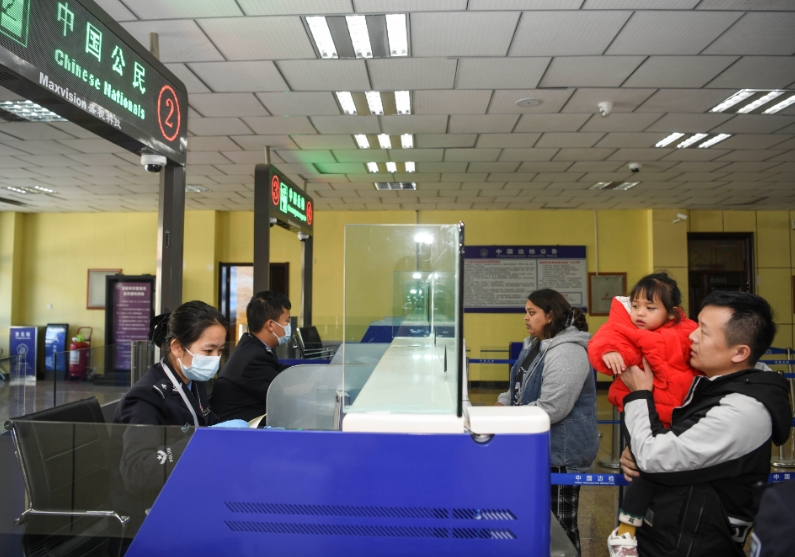 2023年8月29日,準備前往巴基斯坦探親的跨國夫婦鄭銀果、索娜帶著女兒辦理通關(guān)手續(xù)。