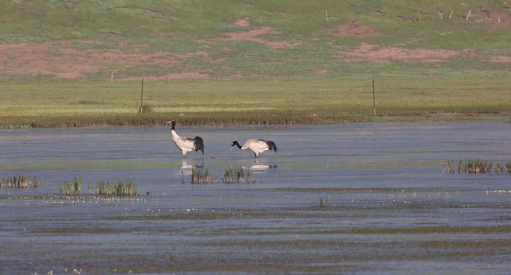 2022年7月1日,在河南縣境內(nèi)活動的黑頸鶴。(才項(xiàng)南加 攝)