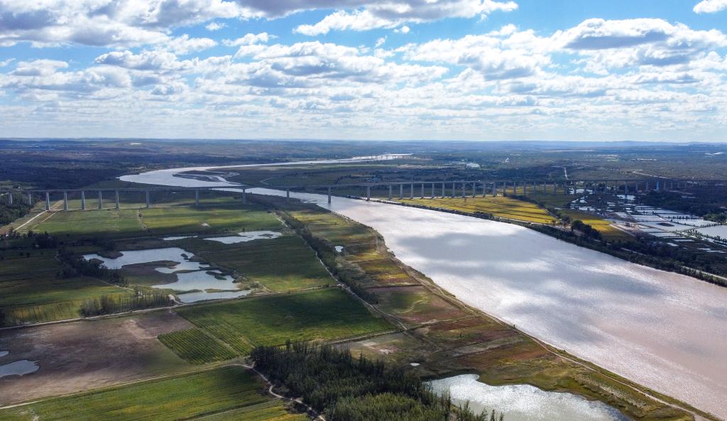 這是2022年9月22日在呼和浩特市托克托縣拍攝的黃河風(fēng)光(無人機(jī)照片)。新華社記者 貝赫 攝