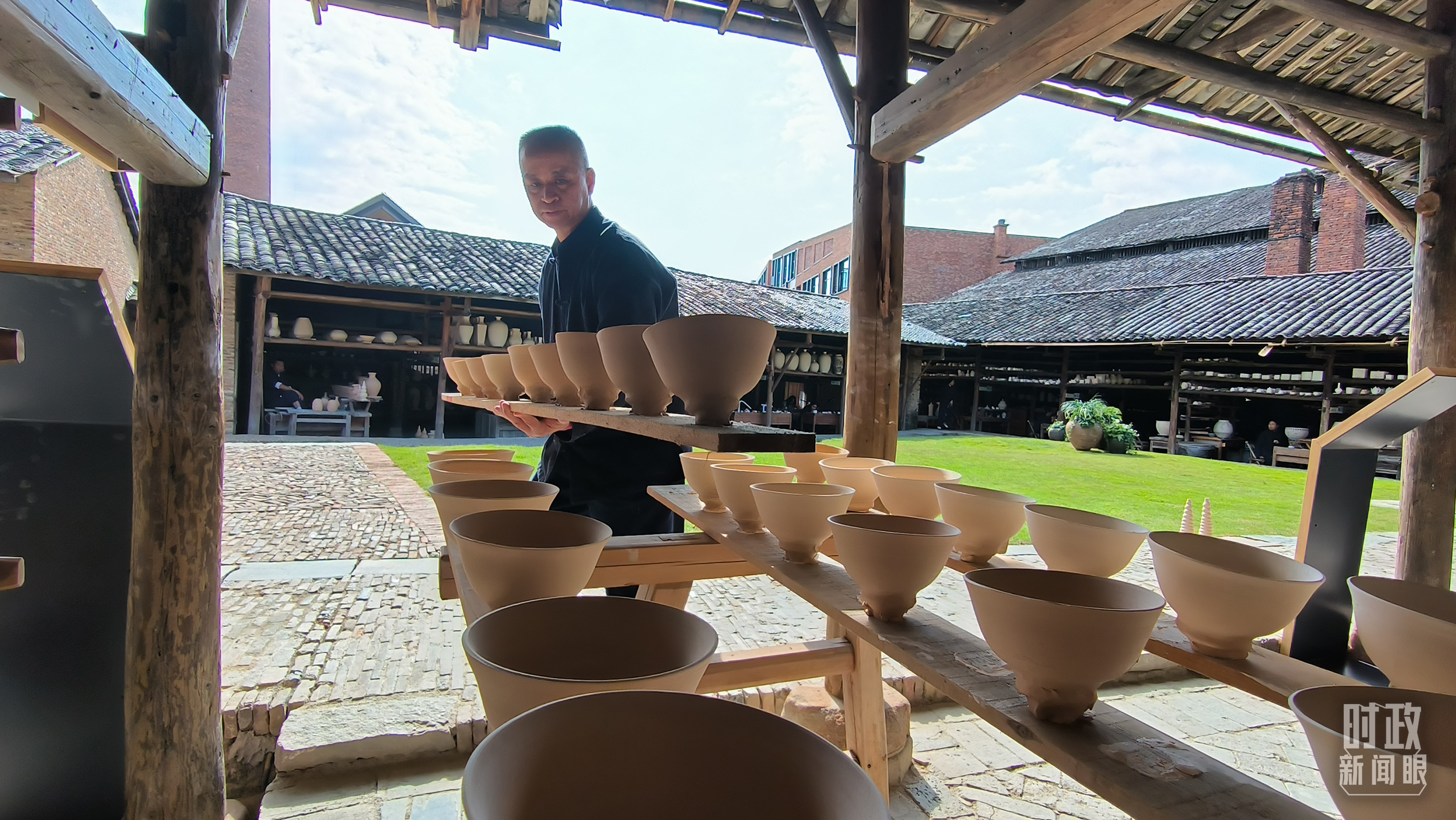 △匠人正在晾曬陶瓷制品。(總臺(tái)央視記者范凱拍攝)