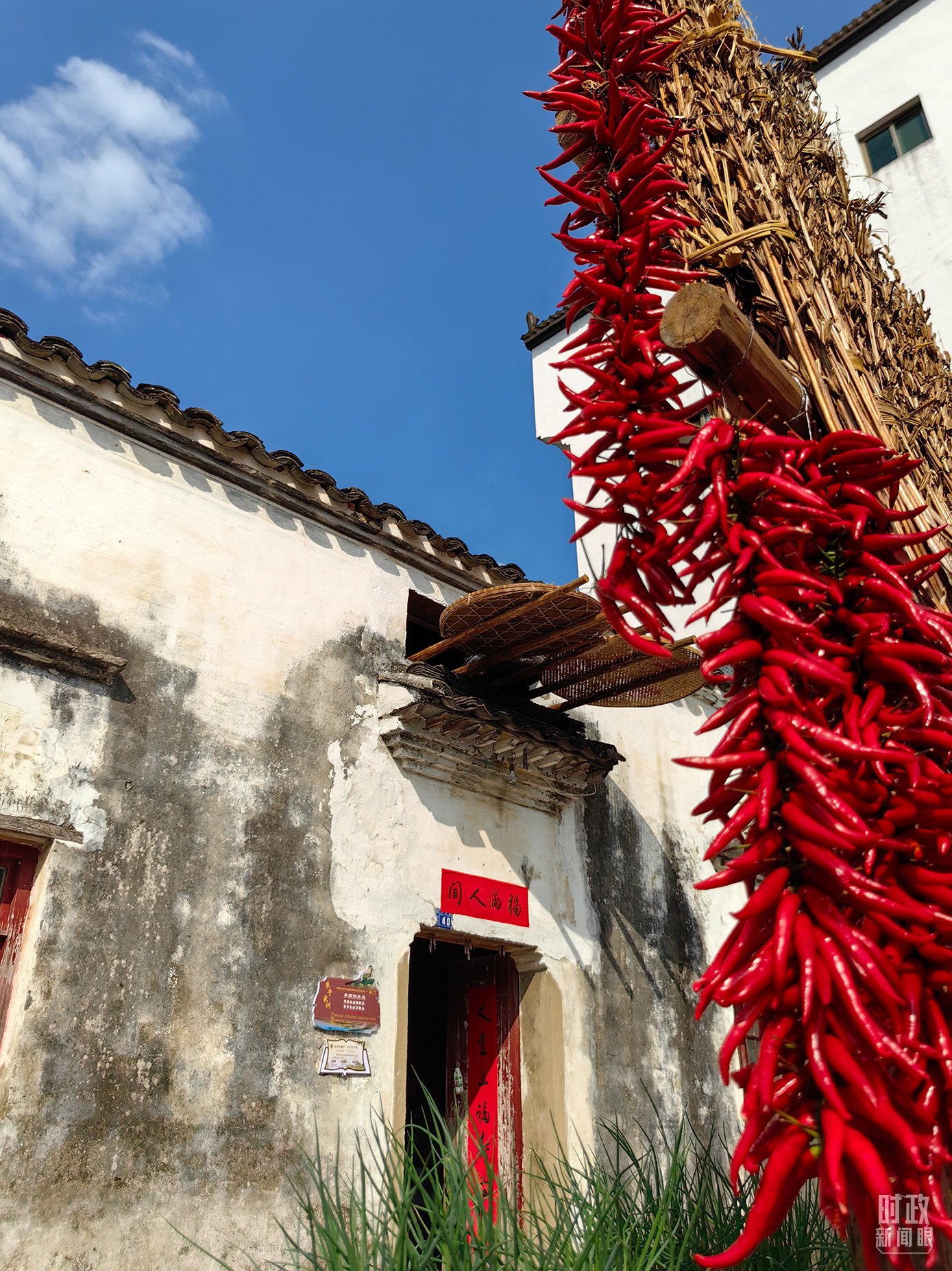 △曬秋農(nóng)俗成為婺源鄉(xiāng)村的一道美麗風(fēng)景。(總臺(tái)央視記者段德文拍攝)