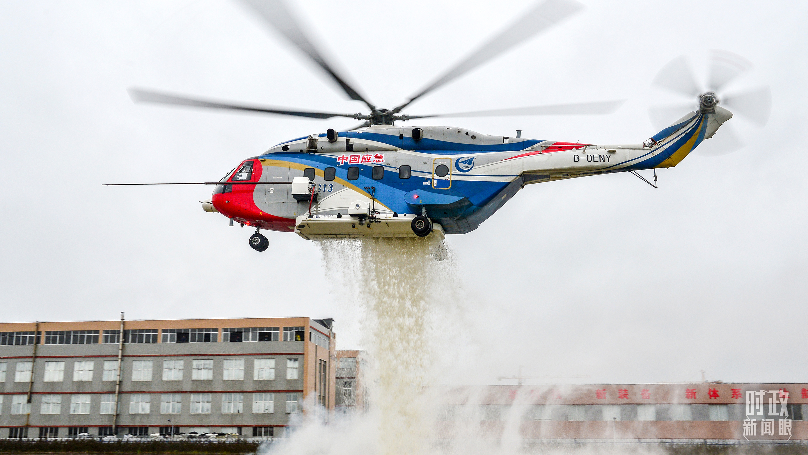 △昌飛制造的AC313直升機(jī)正在進(jìn)行護(hù)林滅火演練。