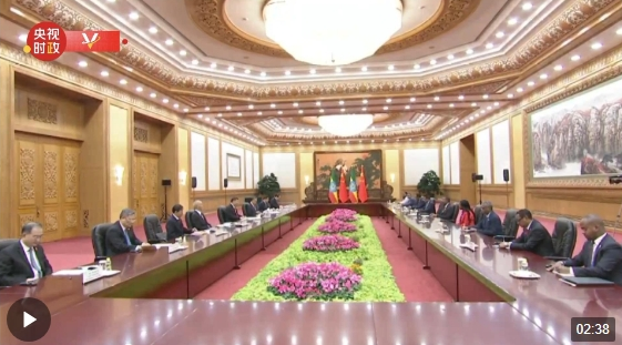 10月17日上午,國家主席習近平在人民大會堂會見來華出席第三屆“一帶一路”國際合作高峰論壇并進行正式訪問的埃塞俄比亞總理阿比。