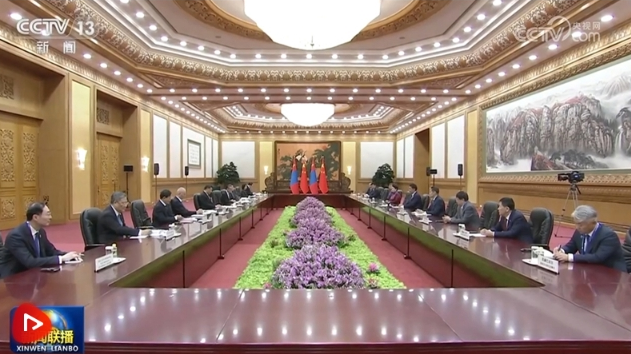 10月19日上午,國家主席習(xí)近平在人民大會堂會見來華出席第三屆“一帶一路”國際合作高峰論壇的蒙古國總統(tǒng)呼日勒蘇赫。