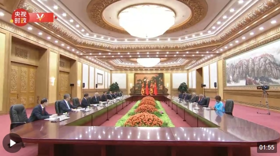 10月20日上午,國(guó)家主席習(xí)近平在人民大會(huì)堂會(huì)見(jiàn)來(lái)華出席第三屆“一帶一路”國(guó)際合作高峰論壇的斯里蘭卡總統(tǒng)維克拉馬辛哈。