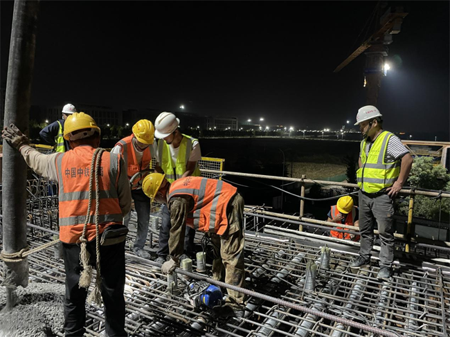 整個澆筑自10月15日下午4點44分開始,至10月16日早上7點30分結束,共用時14.77小時,本次澆筑采用泵送加下料管入模、附著式平板振動器加插入式振動器相結合的施工工藝,澆筑混凝土共計305方。此次澆筑為后續(xù)連續(xù)梁施工奠定了良好的基礎,標志著跨京滬高鐵立交特大橋施工正式進入控制性工程。