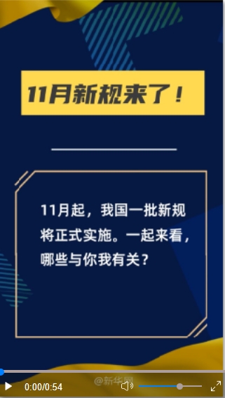 11月起,一批新規(guī)將正式實(shí)施。一起來(lái)看,哪些與你我有關(guān)?(文字來(lái)源:新華社 視頻剪輯:盧俊宇 終審:陳競(jìng)超)