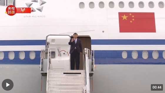習(xí)近平乘坐專機(jī)抵達(dá)舊金山國際機(jī)場時,受到美國加利福尼亞州州長紐森、財(cái)政部長耶倫等美方代表熱情迎接。