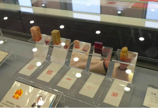 展柜里還有一排整齊擺放的方印格外醒目。其中,三枚是沈自尹院士工作時常用的處方藥和膏方專用印。