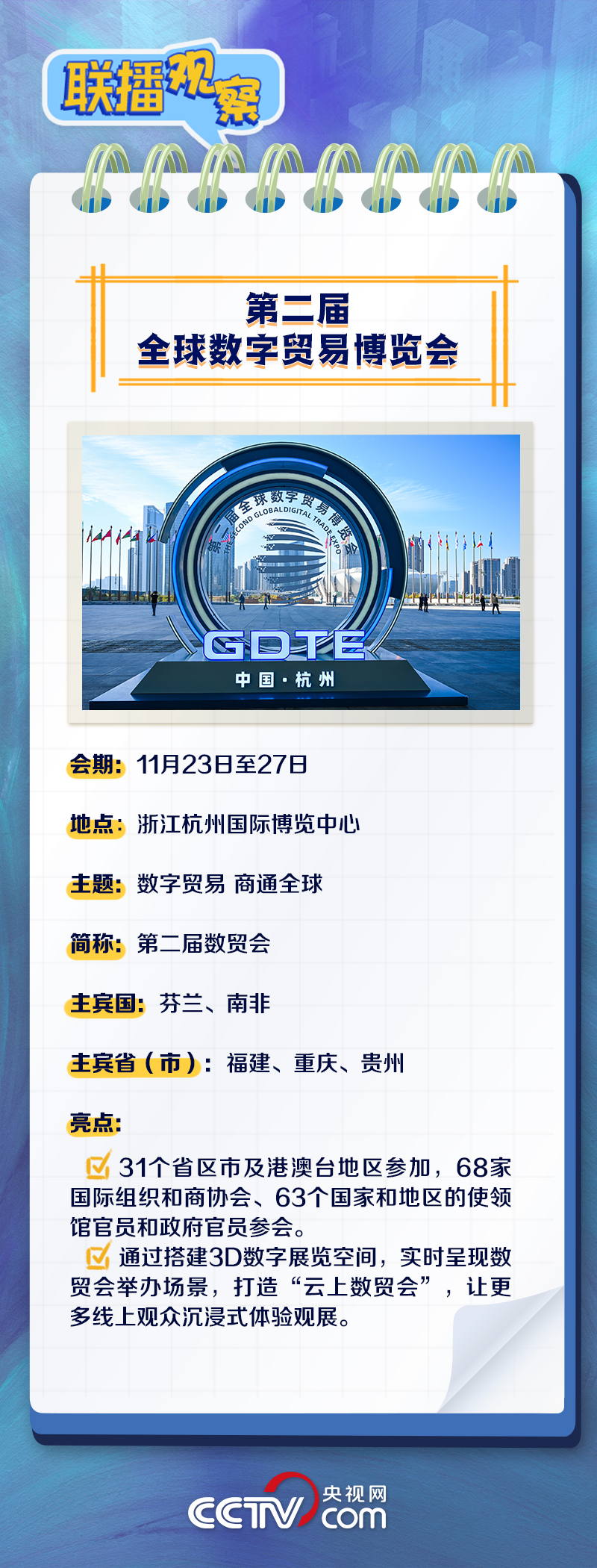 當(dāng)前,貨物貿(mào)易和服務(wù)貿(mào)易都呈現(xiàn)出不可逆的數(shù)字化轉(zhuǎn)型趨勢(shì)。什么是數(shù)字貿(mào)易?本屆數(shù)貿(mào)會(huì)有什么看點(diǎn)和亮點(diǎn)?我國(guó)數(shù)字貿(mào)易有何發(fā)展成果?央視網(wǎng)《聯(lián)播觀察》與您一同了解。