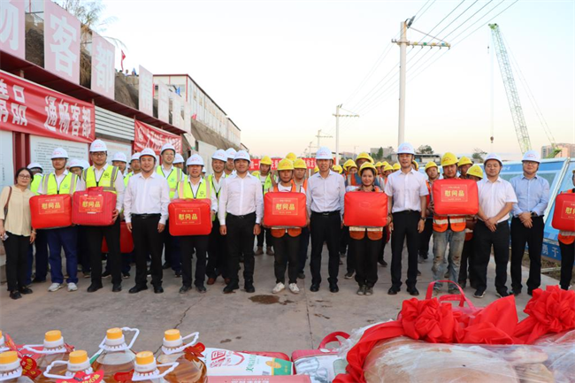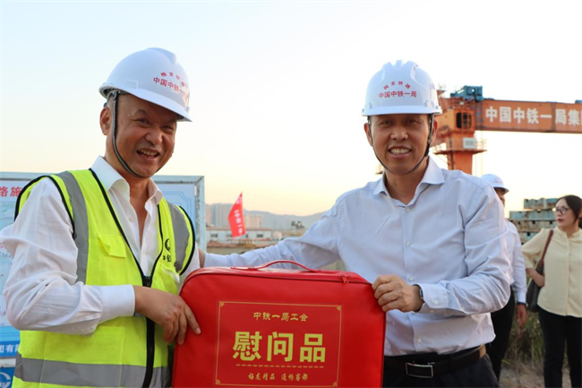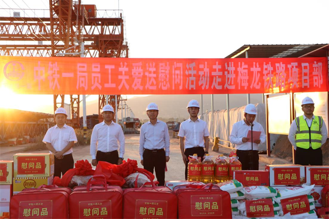 年終歲寒,元旦將至。為深入貫徹落實(shí)黨的二十大和中國(guó)工會(huì)十八大精神,把黨的關(guān)懷和公司工會(huì)的溫暖及時(shí)送到廣大職工群眾的心坎上。12月11日下午,中鐵一局“員工關(guān)愛送慰問”活動(dòng)走進(jìn)中鐵一局梅龍鐵路項(xiàng)目施工現(xiàn)場(chǎng)。中鐵一局黨委副書記、工會(huì)主席王新年,一公司總經(jīng)理韓勝,副總經(jīng)理、工會(huì)主席應(yīng)曉峰等共同為項(xiàng)目一線參建職工送去暖心關(guān)愛。