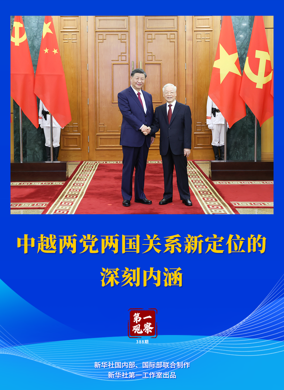 12月12日,中共中央總書記、國家主席習(xí)近平在訪問越南期間,同越共中央總書記阮富仲舉行會(huì)談,雙方宣布兩黨兩國關(guān)系新定位,在深化中越全面戰(zhàn)略合作伙伴關(guān)系基礎(chǔ)上,攜手構(gòu)建具有戰(zhàn)略意義的中越命運(yùn)共同體。