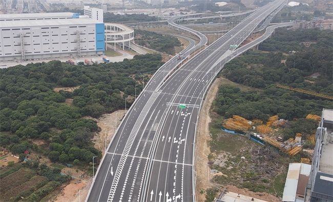 莞番高速公路是《廣東省高速公路網規(guī)劃(2013-2030)》中的加密聯絡橫線,是東莞市“五縱五橫五連”高速公路路網規(guī)劃中的“第二橫”,是東莞市中部東西向連通廣州、惠州的重要通道。項目采用雙向六車道高速公路標準建設,設計時速100km/h,全長64.8公里。項目分三期進行建設,第一期、二期工程分別于2019年4月、2021年12月建成通車。目前通車的三期工程18.18公里是莞番高速項目的最后一期工程,也是S6廣龍高速“最后一公里”。